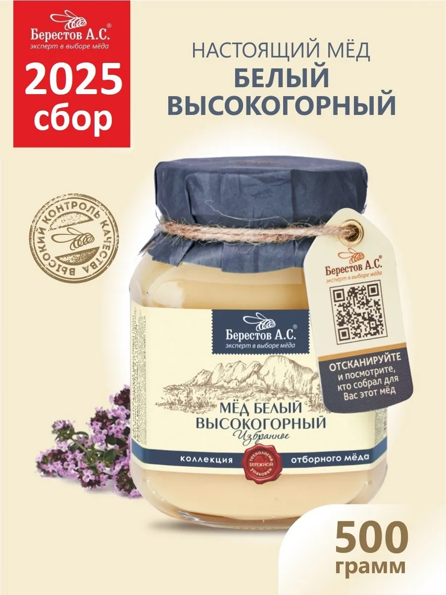 Мед натуральный высокогорный алтайский край 500 грамм от Берестов А.С. — свежий урожай 2024 года