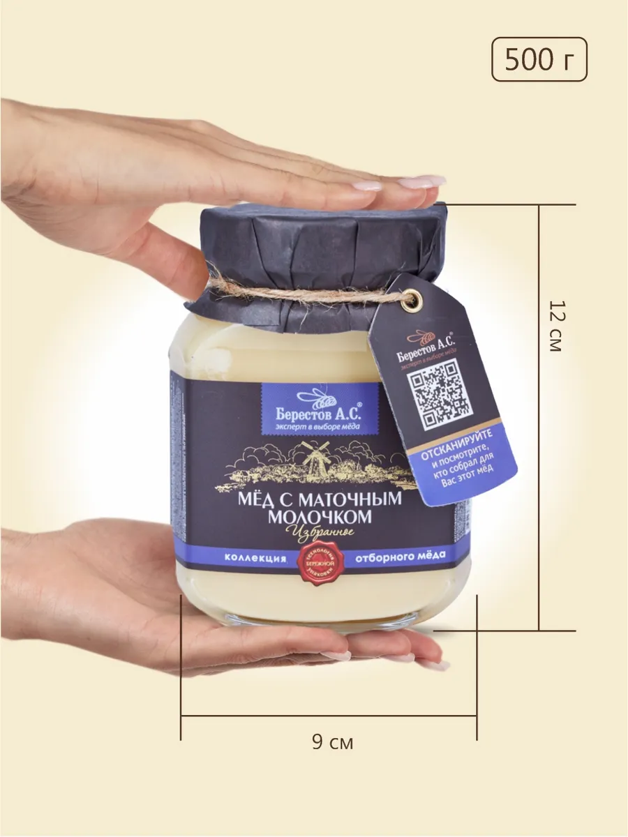 Мёд натуральный «С маточным молочком» от Берестова А.С. - редкий и ценный пчелиный продукт, упакованный в красивую подарочную стеклянную баночку. Это мощное природное иммуномодулирующее средство, сочетающее полезные свойства мёда и маточного молочка.